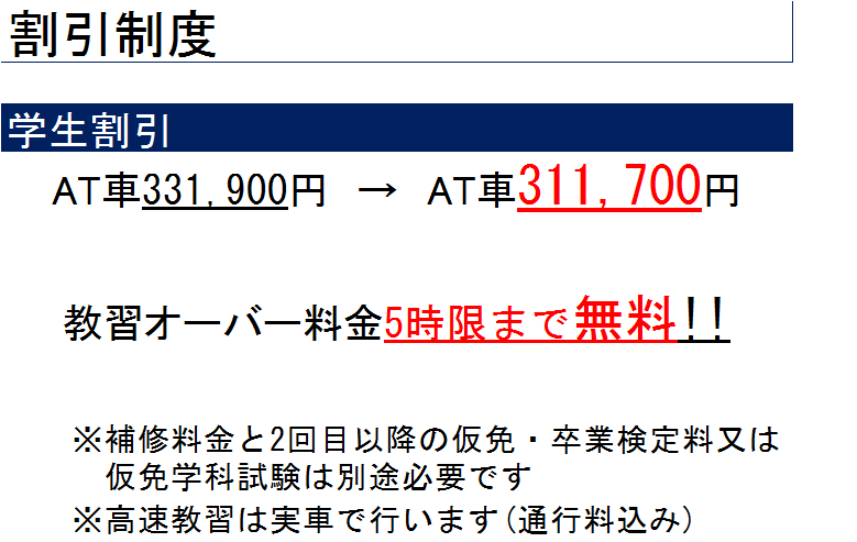 ※学生割引の対象…高校生・大学生(通信制、定時制を含む)、各種専門学校。 ※経済情勢により、予告なしに料金の変更をすることがありますので、ご了承下さい。